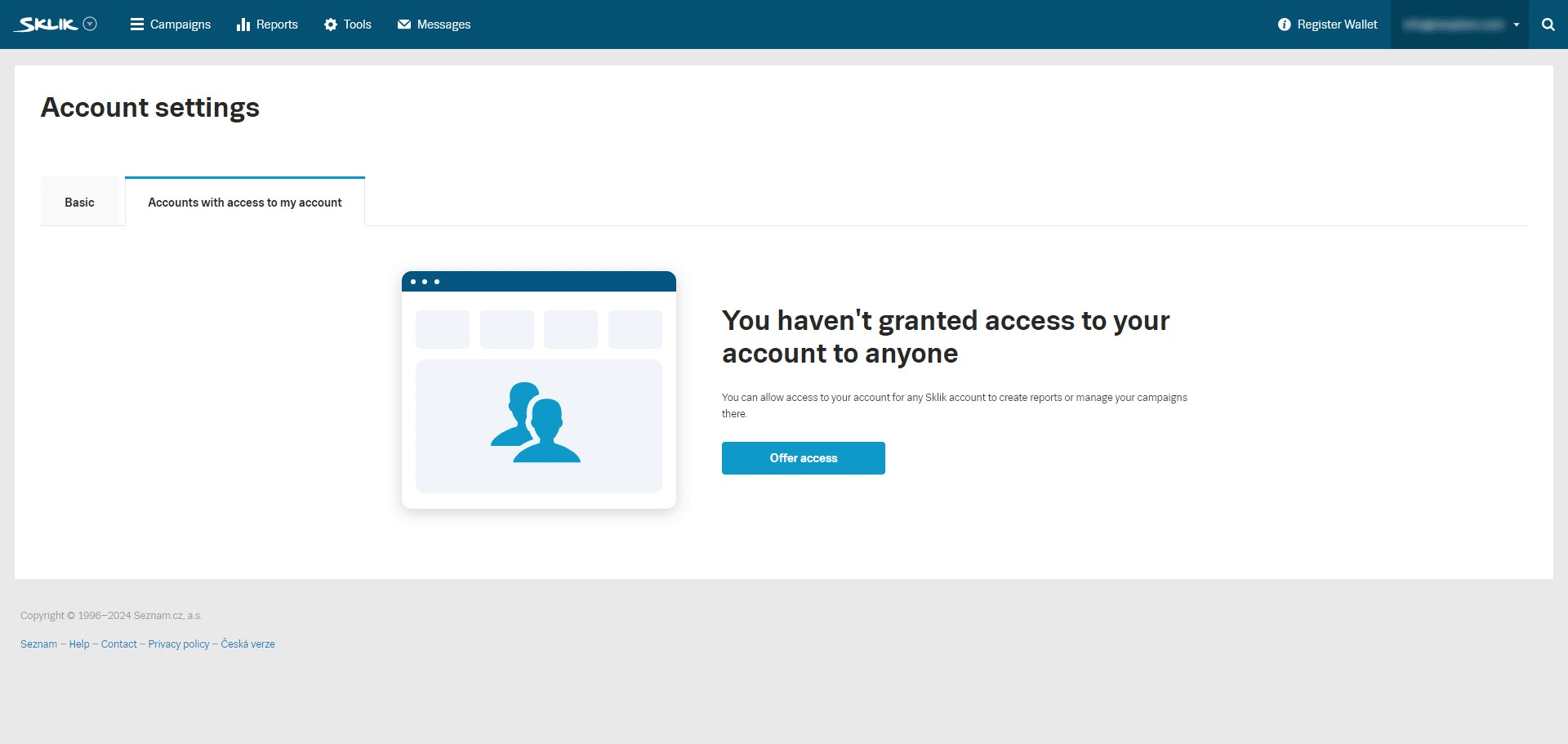 Step-by-step guide on how to grant access to your Sklik account